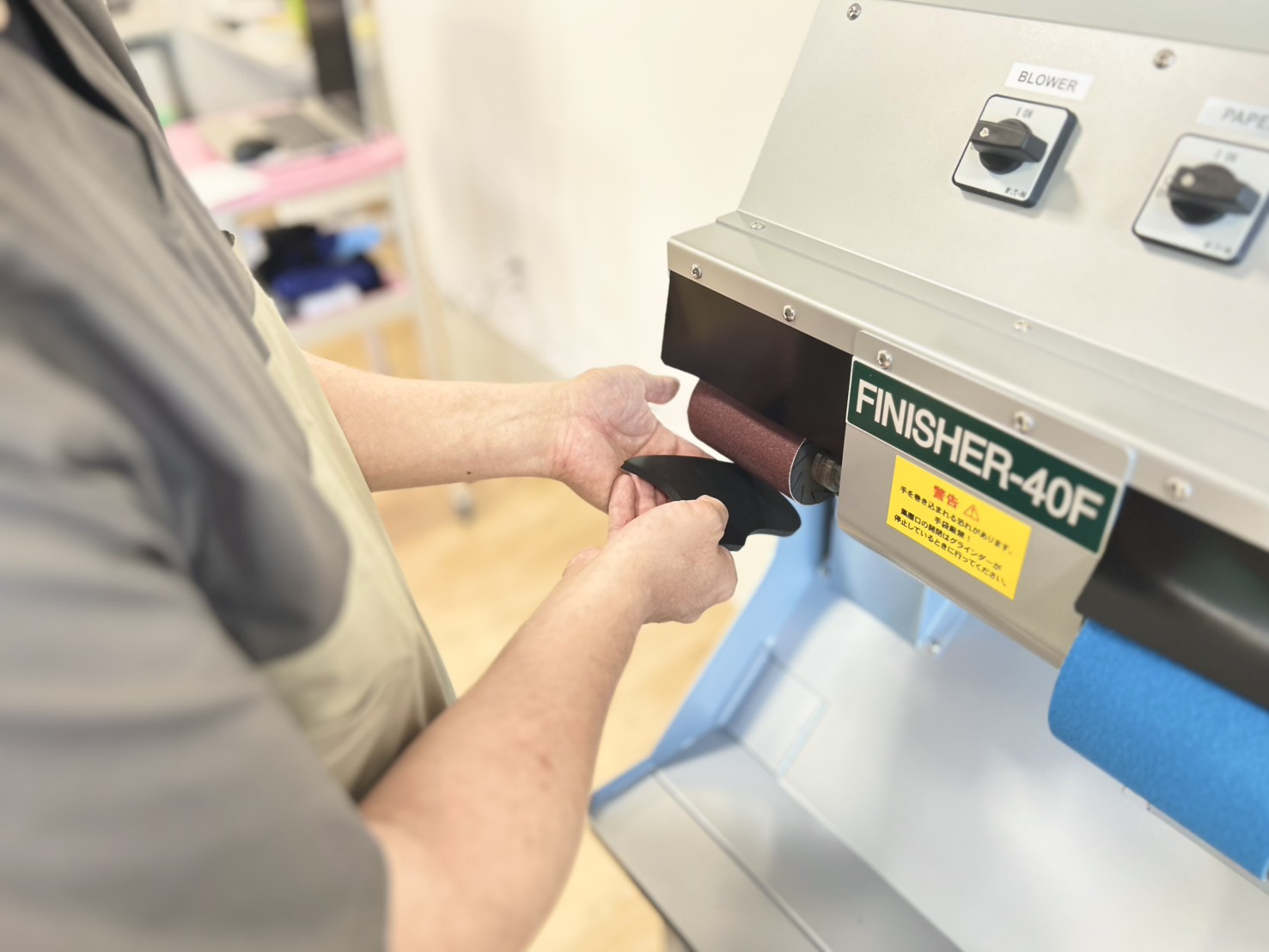 評価結果をもとに、フィニッシャーという機器でアーチパッドを研磨します。